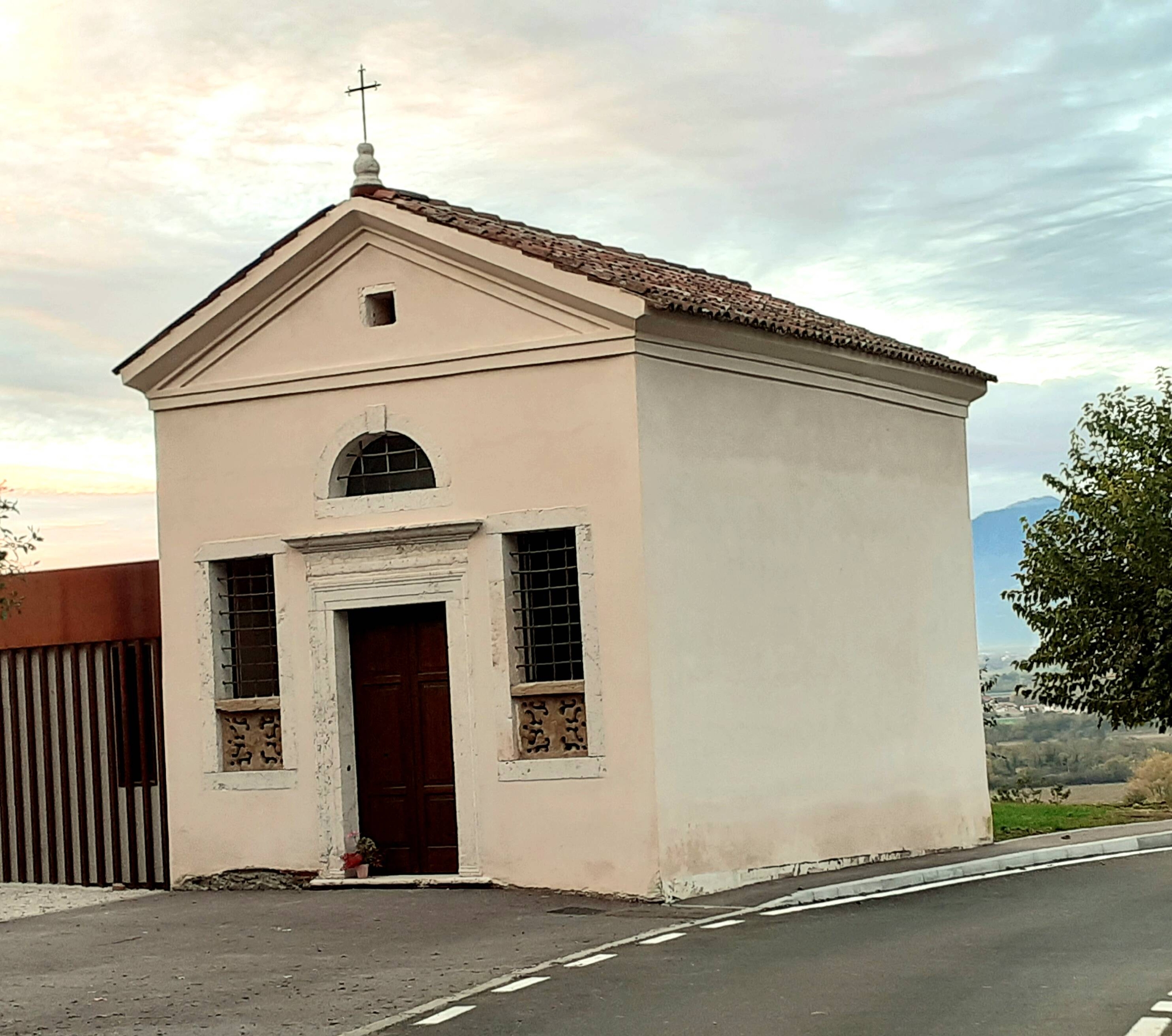 Prima della costruzione della chiesetta, il piccolo bassorilievo (cm. 70 x 62) era collocato inizialmente all'aperto, su stele, e risultava solamente protetto dalle intemperie.